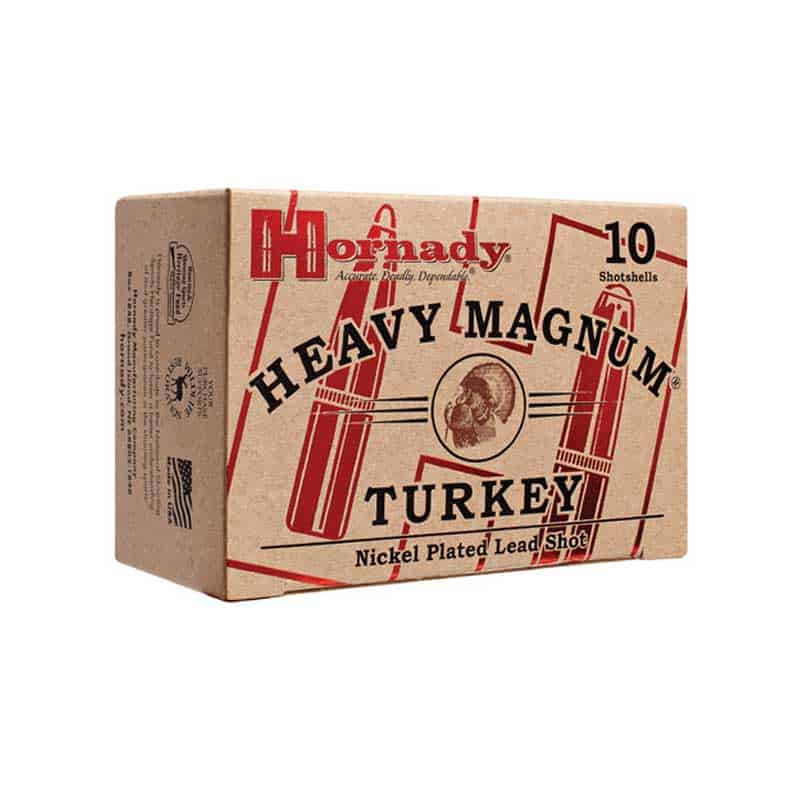 Available in 3″, 12- or 20-gauge loads, Heavy Magnum Turkey® delivers true gobbler knockdown power! Shot deformation is minimized, thanks to the thickest nickel-plating in the industry, which reduces fliers and keeps more pellets on target for dense patterns. The Hornady® Versatite® wad does the patterning, so these loads do not require shotgun modification or specialized turkey chokes. At 1300 fps for the 12-gauge load, and 1200 fps for the 20-gauge load, Heavy Magnum® Turkey ammunition allows hunters to achieve lethal results out to 50 yards.