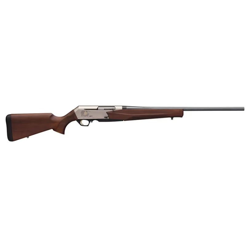 Autoloading hunting rifle with traditional walnut stock, polished blued steel barrel, engraved alloy receiver, detachable box magazine and Inflex recoil pad.