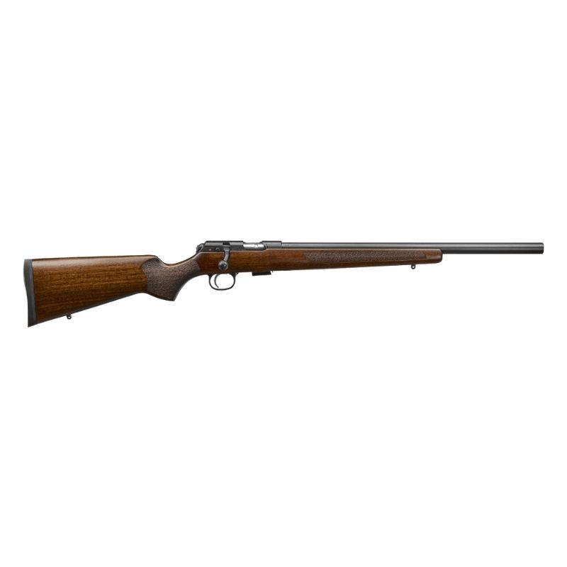 The standard heavy-barreled version of the 457, the Varmint has a .866” cylindrical barrel. Not only does the heavy barrel make for good harmonics, it also allows the Varmint to perform well with a wide variety of rimfire loads, translating into an accurate platform for shooting targets or getting game. The Turkish walnut stock has an American-style comb for use with a scope and a wide, flat forend that rides a sandbag well. Laser-cut stippling gives grip fore and aft.