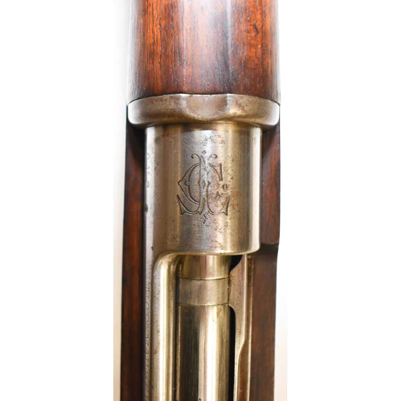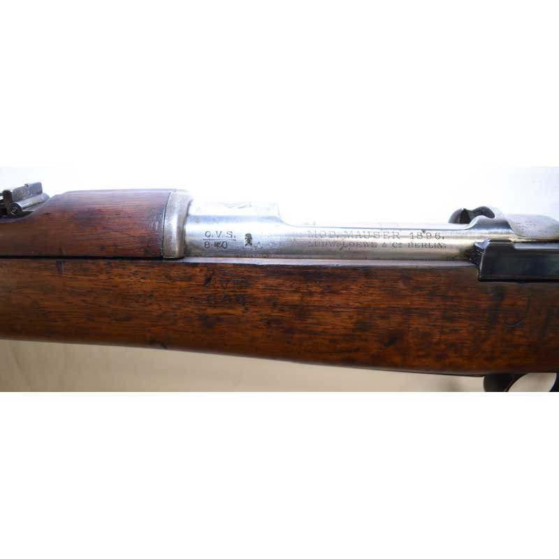 Special Notes: Full military configuration. Correctly marked O.V.S. (Orange Free State) Boer War rifle. Rare Ludwig Loewe factory crest on receiver ring. Stock has been lightly sanded. Barrel has been nicely cold blued. Interesting piece of history.