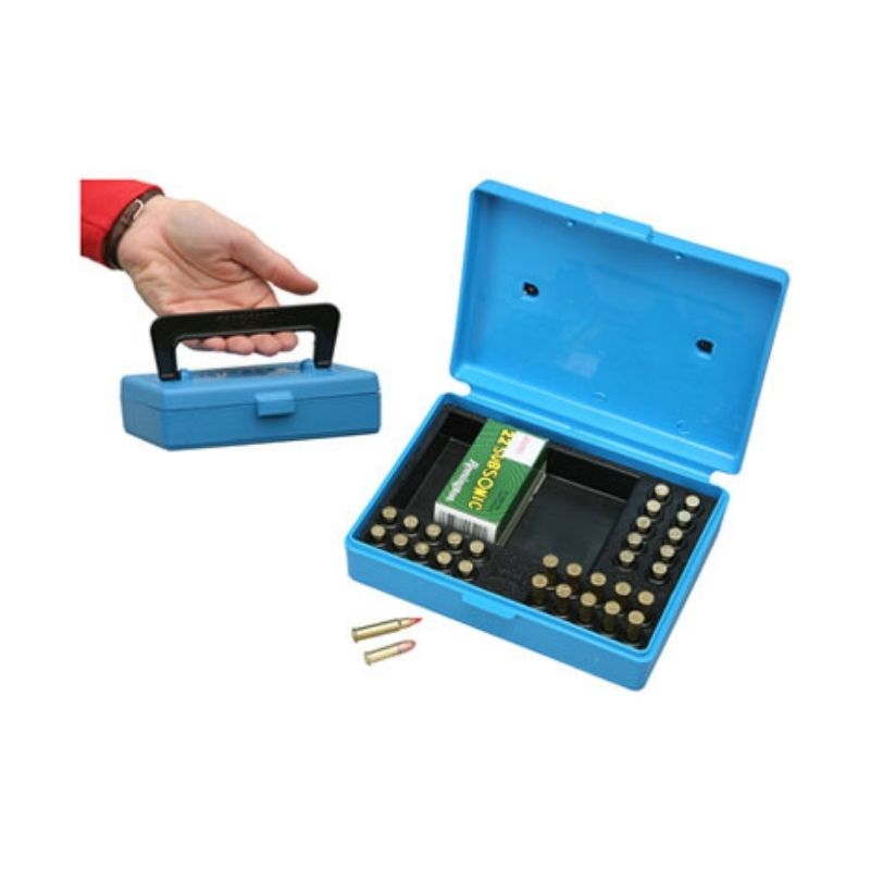 The favorite among 22 rifle caliber small bore competitors. Holds 30 rounds – three strings – projectile down for easy handling. There is enough reserved space for boxed ammo or loose rounds. Features a Snap-lok latch and a fold down handle for easy transporting. Retooled in 2008 and now fits 17 HMR.