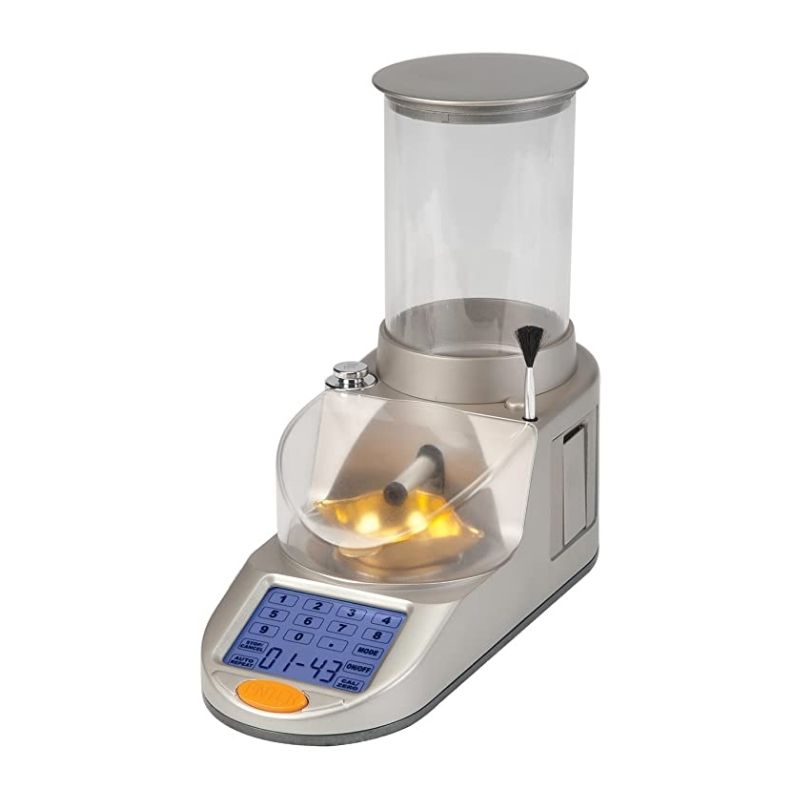 The compact Gen6 design takes a minimum of bench space and offers unrestricted pan and touch screen access for both right and left hand users. Accurate to one tenth grain, the Gen6 dispenses all types of smokeless powder at two grains per second. In addition, it features an auto repeat function that drops a precise charge each time the pan is reset.