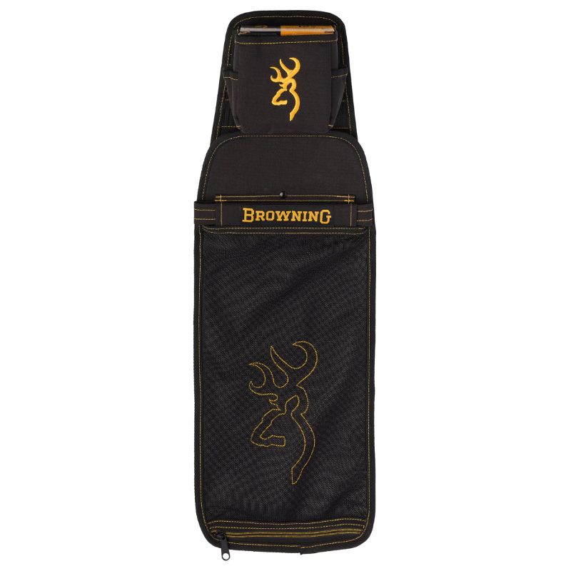 Constructed with water-resistant black ripstop fabric with contrasting gold stitching. Large fired hull pouch and shell box holder attach to the semirigid MOLLE platform or each item may be used individually.