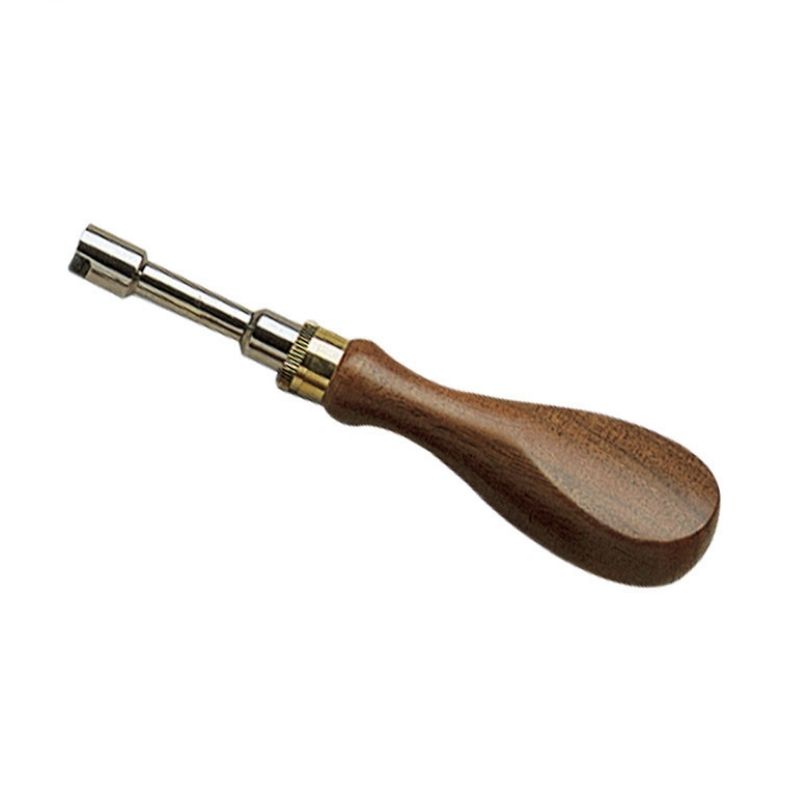 Nipple wrench with wooden handle for muzzle-loading guns, with nipple slot of about .236” (6 mm).