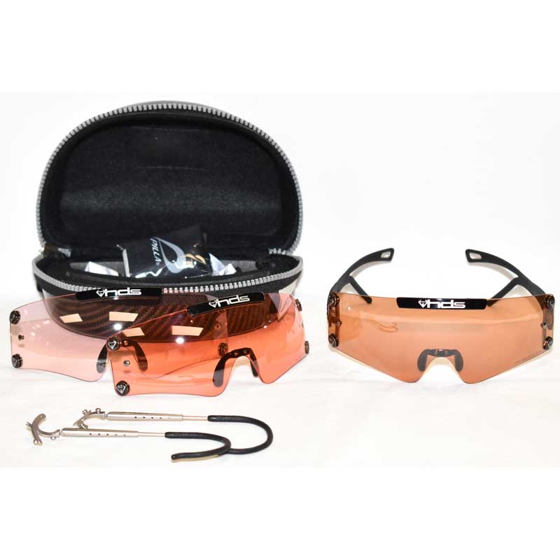 Carbon Fiber temples with a titanium inner core that can be formed to a customized fit. The forked ends are designed to wrap around and cradle the back of the head, reducing weight on the front and eliminating the need for a nose piece. The high performance megol rubber brow bar is complete with “RAM-AIR” venting holes to push air down the back side of the lens and reduce any fogging. The Snap-tech lens changing system comes standard on the Outlaw X6A, making lens changing as easy as it gets. The oversized lens allows for a completely unobstructed view across the nose bridge, making it the perfect archery glass. This also eliminates stray light coming from extreme angles.