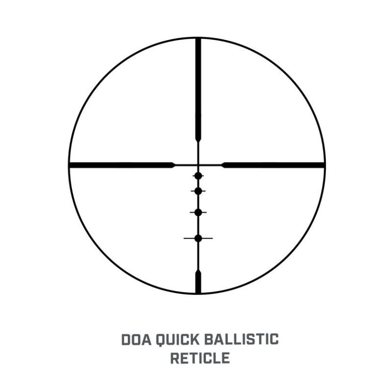 - DOA QUICK BALLISTIC RETICLE FOR FAST, ACCURATE SHOTS WITH ANY CALIBER The DOA Quick Ballistic Reticle provides 5 drop points with 5 mph wind hold lines. The reticle can be used for any caliber that matches your typical hunting cartridges out to 500 yards. With the free Bushnell Ballistics App you can quickly determine your exact distances on the reticle making it easy to have confidence in every shot.