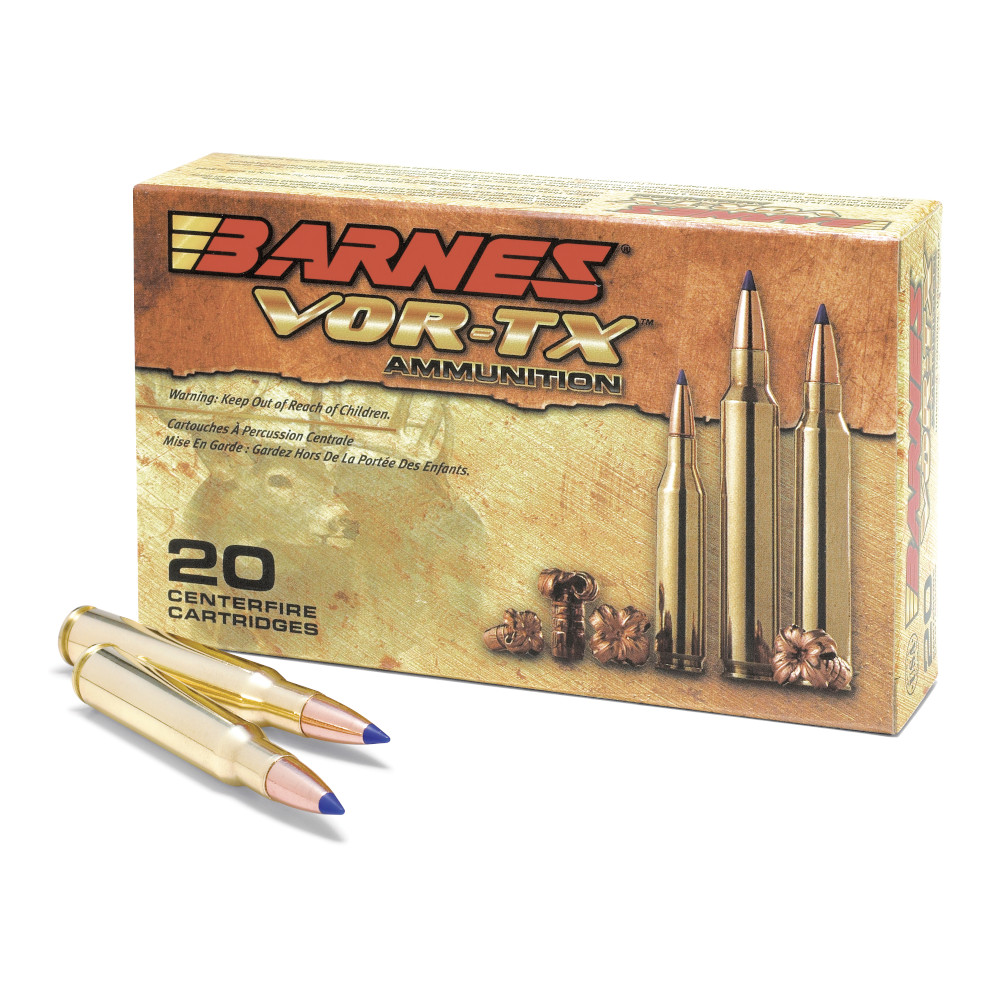 Barnes® VOR-TX® is precision ammunition loaded with the deadliest bullets on the planet. Barnes, the leader in bullet innovation offers hunters the ultimate in accuracy, terminal performance and handloaded precision in a factory loaded round. Offering double-diameter expansion, maximum weight retention and excellent accuracy, the TSX®, Tipped TSX™, and TSX FN™ provide maximum tissue and bone destruction, pass-through penetration and devastating energy transfer. Multiple grooves in the bullet’s shank reduce pressure and improve accuracy. Barnes all-copper bullets open instantly on contact – no other bullet expands as quickly. Nose peels back into four sharp-edged copper petals destroying tissue, bone and vital organs for a quick, humane kill.