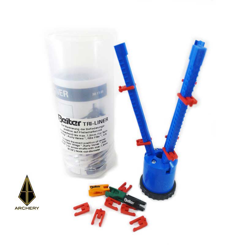 A great tool to consistently mark where on your shaft you’re going to put tape-on fletchings, such as Spin-Wings and Spider Vanes. Clamp your arrow in place, and then mark on the shaft where each vane should be placed.