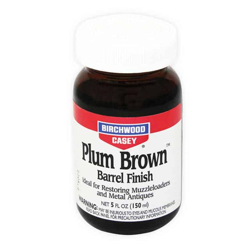 Produces a rich, authentic, old-style brown finish for original or replica firearms. Plum Brown™ barrel finish is ideal for restoring antique guns, muzzleloaders and other metal antiques. A durable, protective and attractive finish that’s simple to apply. Just heat metal with propane torch or other clean, convenient method and apply browning solution with sponge. Immediate results – no waiting for old-fashioned slow rust process which can take weeks to finish.