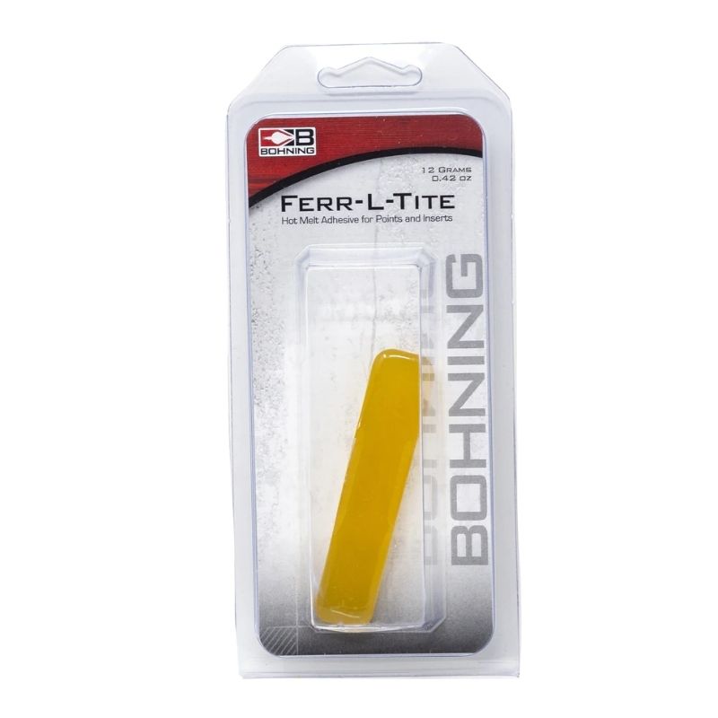 Ferr-L-Tite was Bohning’s first product, developed in 1946, and has been the archery industry’s standard ever since! This hot melt adhesive is designed for points, inserts, and outserts on wood and aluminum shafts (for carbon, we recommend Ferr-L-Tite Cool Flex). It requires an open flame for installation or removal and is fully cured as soon as it reaches room temperature (about 5 minutes). Ferr-L-Tite is heat reversible on aluminum shafts – flame required.