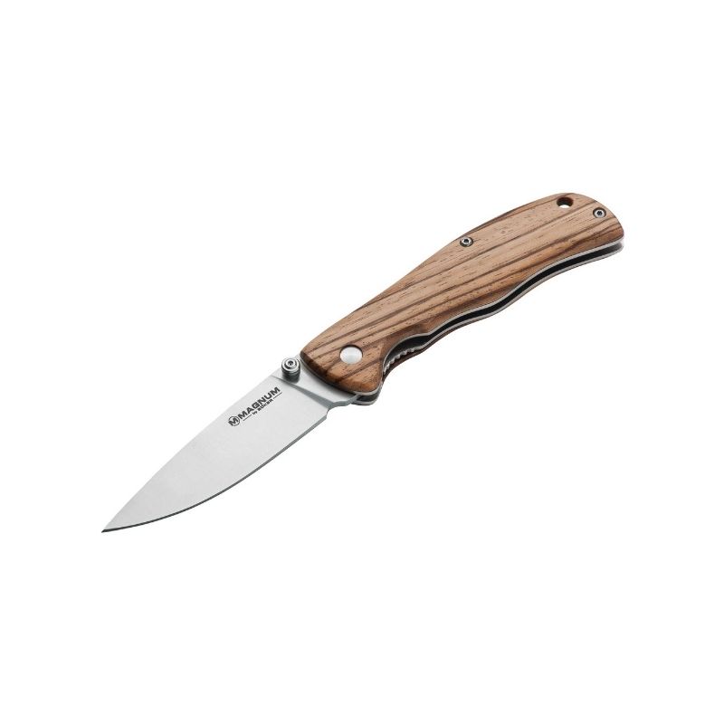 A beautiful and useful knife for the next trip. The fine satin-finished blade of 440 stainless steel is completely flat ground to deliver the best cutting performance. The blade is locked by liner lock. The grained wooded handle alone is a feast for the eyes. The clip and lanyard hole mean you can prevent the knife being lost.