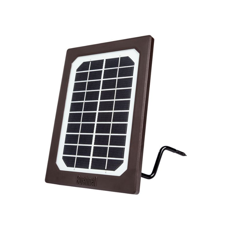 The Bushnell Solar Panel accessory (#119986) is designed to function as a supplemental source of power for all current models of Trophy Cam HD Aggressor, Trophy Cam HD Aggressor Wireless, Impulse, Core, CelluCore, and Prime series cameras. With the Solar Panel mounted near your camera and connected to its external power input jack, you will find that your camera’s batteries last much longer before they need to be replaced. The solar panel has an internal lithium ion power core, which is continuously charged by the solar cells when they are exposed to the sun. Once connected, the camera will draw its power from the solar panel’s charged lithium battery for as long as possible, switching to its internal batteries only when the Solar Panel’s battery’s charge level is too low. As a result, the camera’s batteries will have significantly longer life.
