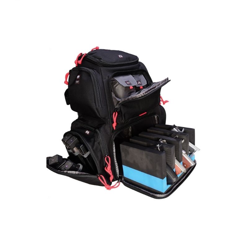 This new “free standing” backpack allows for hands free transportation to and from the range. Our new “Handgunner backpack” was designed to allow the avid handgun shooter a way to transport his handguns, 12 extra magazines, ammo, shooting glasses, ear protection, targets, stapler, tape, Binos, shooting mats, and cleaning supplies all in a compact backpack. By utilizing our visual id storage system we have designed separate pockets that store your most frequently used items for added protection and easy retrieval.