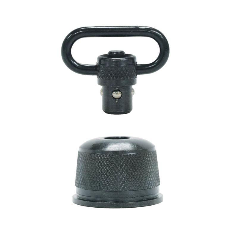 Standard mag cap replaces factory cap and allows the use of any GrovTec push button swivel or even the multi-adaptor for speed and versatility in the field. Each set includes one 12 gauge mag cap and one standard 1-inch loop push button swivel.