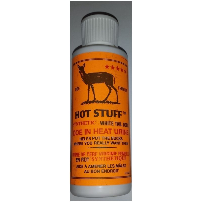 Bottle of Synthetic Doe-in-heat urine, 113 mL. Helps to attract bucks and does.