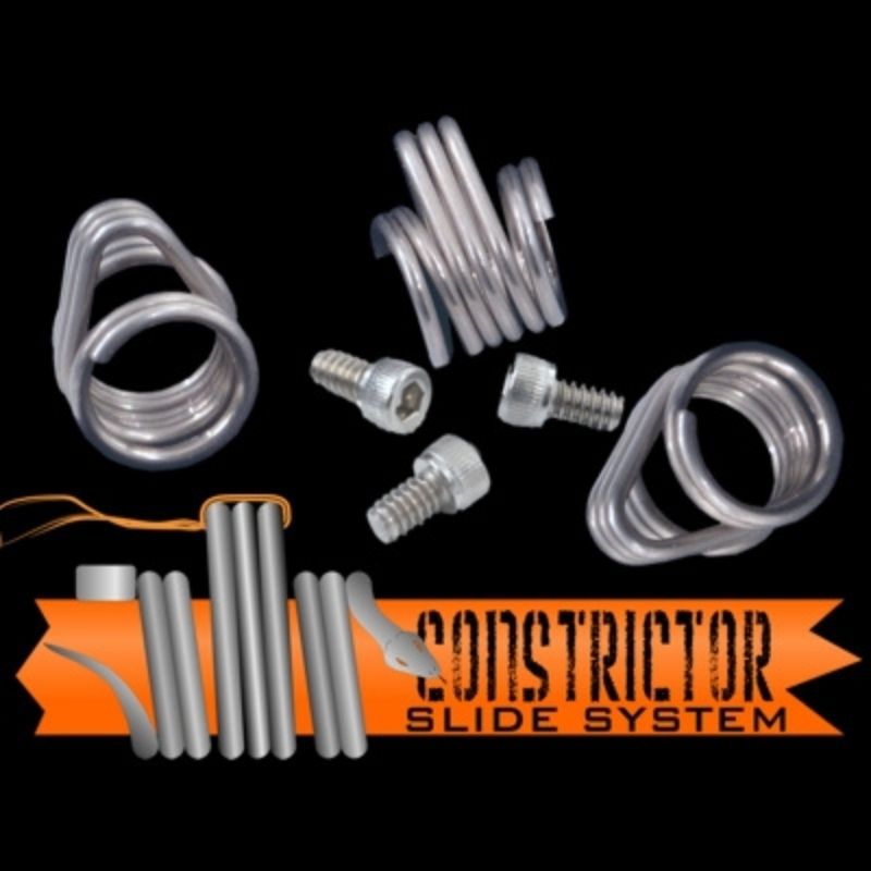 The Constrictor Slide System is a patent pending newly designed bowfishing arrow slide that is created from all stainless steel for unmatched toughness. The Constrictor features a 3 loop tie area that creates opposing forces as it is pulled on.