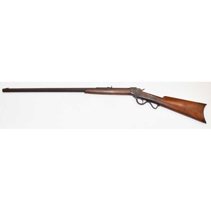 Special Notes: Lovely tight action. Nice overall brown patina. Light pitting in bore. Nose of comb has a chip in it where the vernier sight used to hit. Vernier sight did not come with rifle.