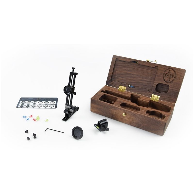 Professional set in treated wooden box consisting of professional Creedmoor sights, tunnel front sight, colored glass bubbles and interchangeable front sight insert set.