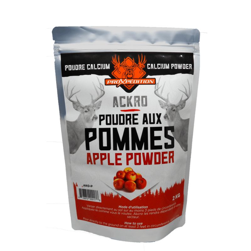 Create an addiction to that sublime fruit flavour. Deer in your area will love it. Ackro Apple/Mixed Berries Powder is a blend of calcium and mineral powder that tastes like fresh apples/mixed berries. Simply pour it directly on the ground over a minimum of 3 feet in circumference, sprinkle it on the foliage of trees to create a natural feeding site for your game and see the effects of the habit you’ve created on area deer.