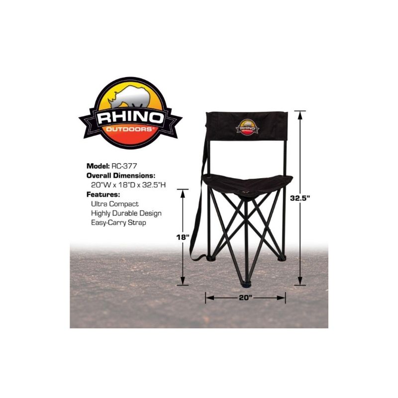The Rhino Outdoors RC-377 Hunting Chair is a high-back tripod chair that folds into a compact position with an attached shoulder strap for easy transport. Whether you are outside in the elements or inside a ground blind, this chair provides you a comfortable place to sit for extended periods of time. This chair also has flat-based feet that help prevent you from sinking into the ground, giving you a nice sturdy base.