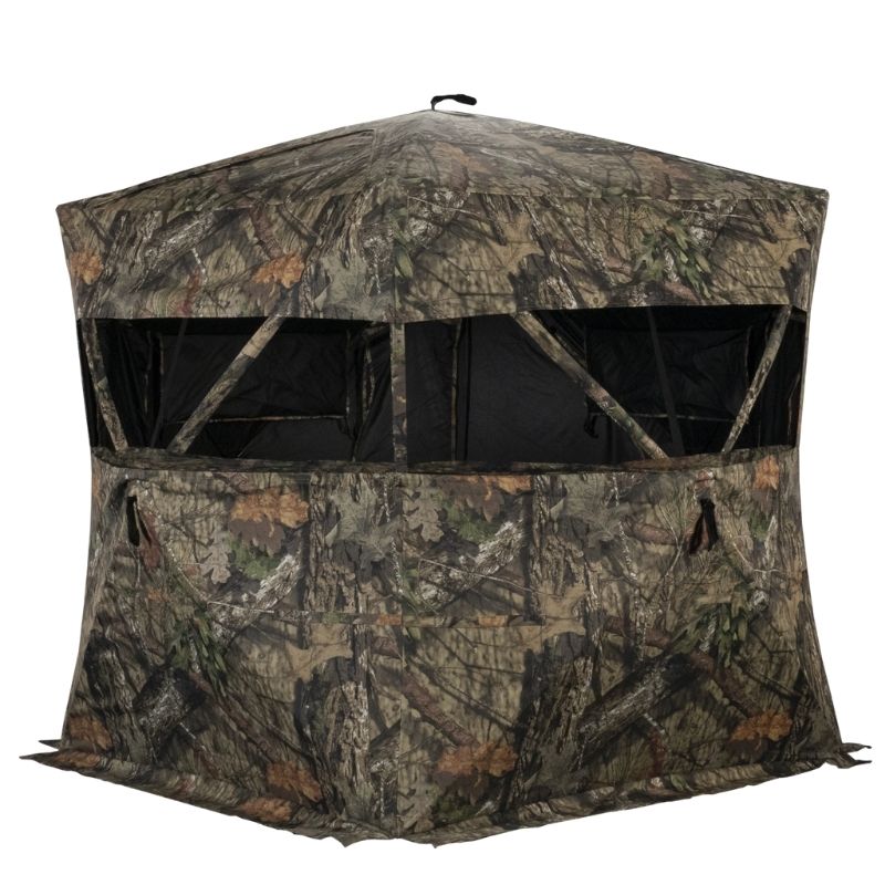 Rhino Blinds and Bone Collector have come together to create the toughest and most innovative ground blind on the market today. The Rhino-150 edition can comfortably fit 2-3 hunters, and the durable 5-hub system allows for quick and easy set up. The R150 has a 66″ Center height, hub to hub 75″ X 75″, and floor space 58″ X 58″. It’s constructed of 150 denier, threaded in both the horizontal and vertical weave. Rhino Blinds are easy to set up and take down. With a little practice setting the blind up can be accomplished quickly in as little as 60 seconds once the blind is out of the carry bag.