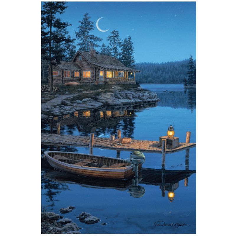 - Long lasting and energy efficient LED lighting incorporated into the design, these prints come to life with LED and fiber optic illuminated features such as cabin lights, sunrises and sunsets, moon, flickering fires, and twinkling stars.