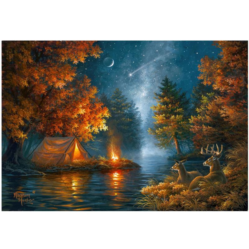 - Long lasting and energy efficient LED lighting incorporated into the design, these prints come to life with LED and fiber optic illuminated features such as cabin lights, sunrises and sunsets, moon, flickering fires, and twinkling stars.