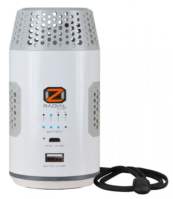 The OZRadial Nano white/grey is the perfect compact solution for your on-the-go odor control needs. This portable ozone generator was specifically designed to quietly seek out and destroy odors and bacteria that get in its path. The innovative CycleClean technology allows the generator to moderate the output by alternating active and resting phases which helps achieve maximum efficiency and battery life.