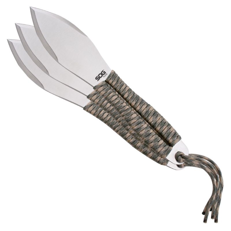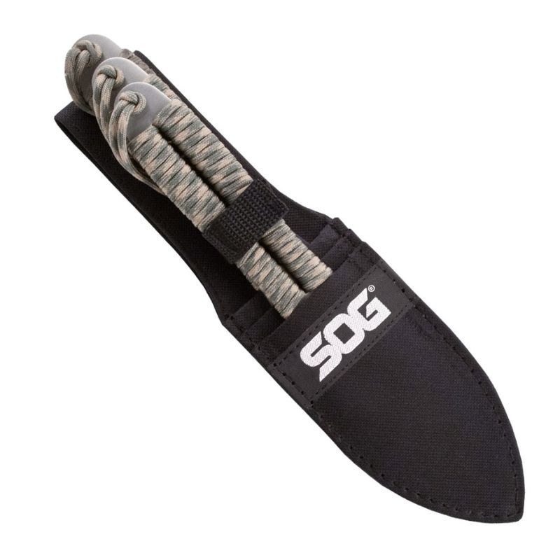 The Fling knives are styled after traditional throwing knives and perfect for backyard competitions. Each knife handle is wrapped with 7 feet of paracord, giving you a total of 21 feet, prefect for those unexpected situations. Also included with the three knives is a ballistic nylon carry sheath. See who can hit the bull’s eye first!