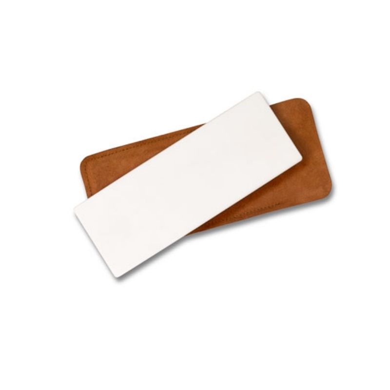 This ultra-fine, ultra-thin ceramic benchstone is used like a traditional sharpening stone, but does not require oil or water. Its extra-wide surface is ideal for sharpening woodworking tools and large knives and can be easily cleaned with household cleanser, a scouring pad, and water. It comes in a leather sleeve case that also serves as a non-skid pad while sharpening.