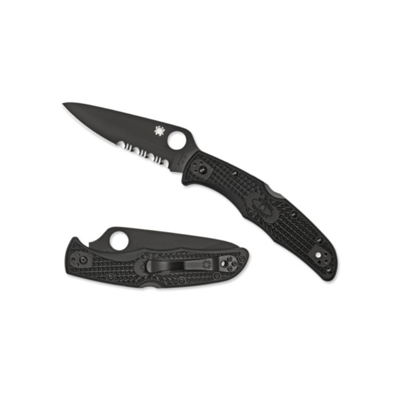 All Endura 4 Lightweights are distinguished by their skeletonized stainless steel liners and injection-molded fiberglass-reinforced-nylon (FRN) handles. This specific version of the design includes a stout saber-ground VG-10 stainless steel blade with a partially serrated CombinationEdge™ and a low-profile black titanium carbonitride (TiCN) coating. The blade is supported by a sturdy back lock mechanism that locks it securely open when in use yet allows easy ambidextrous lock release. Bi-Directional Texturing™ on the handle ensures a positive grip in even the most demanding conditions and its four-position pocket clip can be easily configured for tip-up or tip-down carry on either side of the body. Like the blade, the knife’s clip, lock bar, and other metal hardware all feature a stealthy, non-reflective black coating.