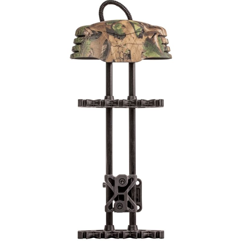 The 5-Spot quiver allows you to do either with extreme ease and smart design. The fully adjustable dual arrow grippers hold arrows quiet and secure, the quick detach mounting bracket allows for quick on/off and the hollow hood won’t dull or deploy broadheads.