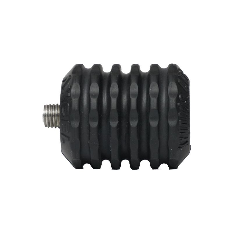 The Kryptós Arc offers superior dampening in all axes…X, Y, and Z! The equally spaced ribs around the circumference cause superior Z-axis vibration reduction. The Arc-Shaped Scalloped Rings with smallest diameter grooves in the middle cause superior X & Y axis vibration reduction. Beyond the shape, our strong proprietary rubber material supports up to 10 oz of weights with minimal sag. Our Kryptós Arc Vibration Dampeners are the result of extreme testing and come standard on all CarboFlax stabilizers.