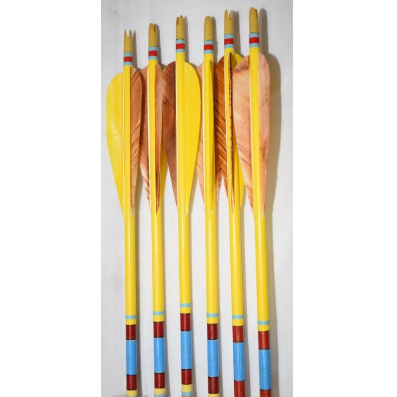 USED-CRESTED WOOD ARROWS W/BODKIN BDHD YL/BR