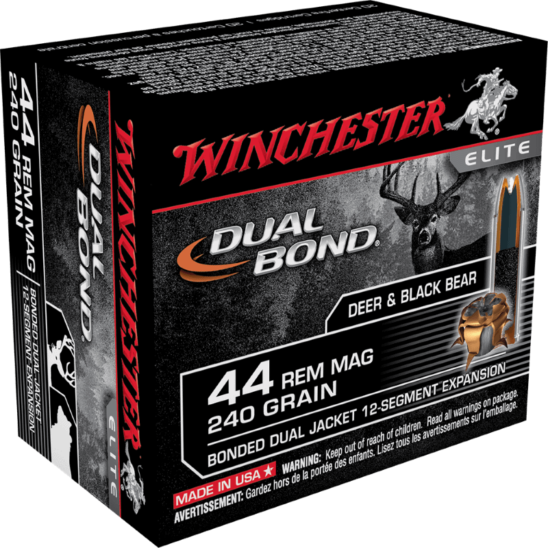 Dual Bond is engineered using state-of-the-art “bullet within a bullet” technology. The proprietary construction and massive hollow point provides two times the expansion featuring a 12-segment design. A heavy outer jacket is mechanically bonded to the inner bullet, protecting it during deep driving penetration, which provides maximum trauma.