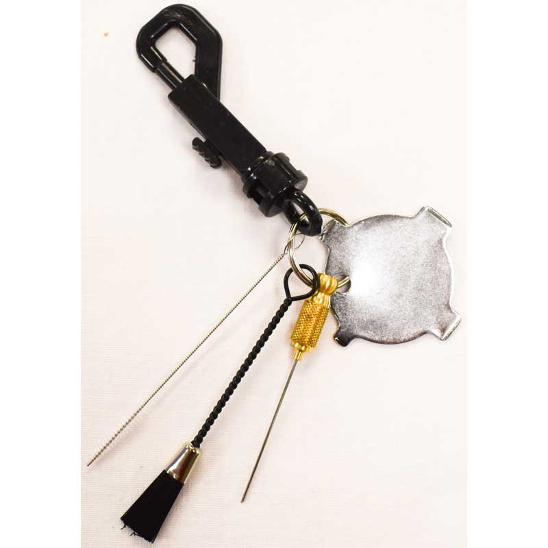 A must for every hunter. Each kit features a high quality pan brush, touch hole pick, 4 way key for tightening the top jaw screw – all on a handy ring with a belt hook.