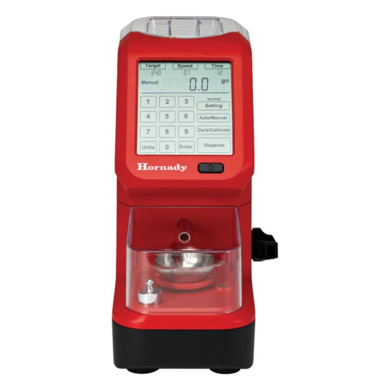 The Hornady® Auto Charge Pro provides precise, customizable powder dispensing in an easy-to-use, space-saving unit. Precise to within 0.1 grain, the Auto Charge Pro offers customizable trickle speeds for various powder types, as well as custom time settings.