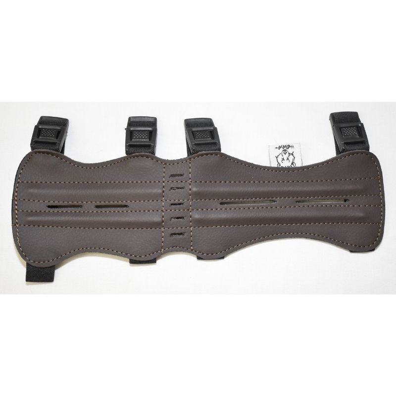 Armguard made from artificial leather (vinyl) material. Protection wires inside. Designed to protect upper and lower portion of arm.