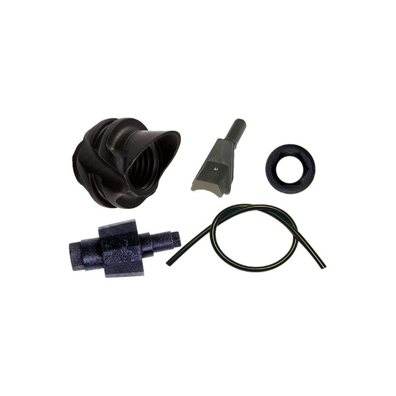 Super Hunter peep kit includes: 1/4” 37 degree Large Hooded aluminum peep, Peep Reducer, silicone alignment tubing, Peep Aligner Large, and Dual Aperture wrench.